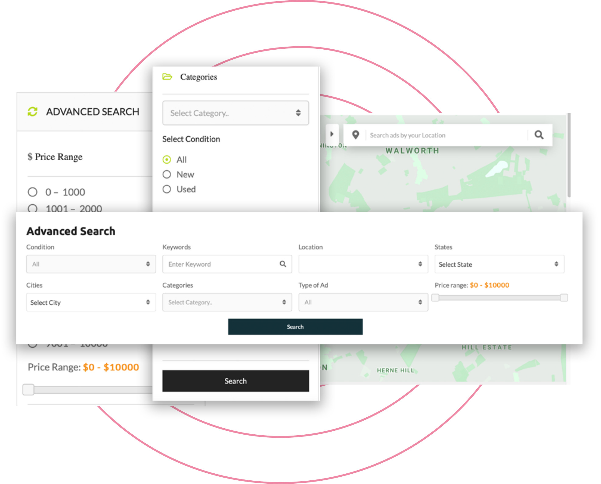 Most Advanced and Powerful Search System to ensure that your website user will find anything what they want according to their desires. For Admin You just think and can add in classiera. Classiera have layout option as well you can choose advance search topbar and sidebar where you like.