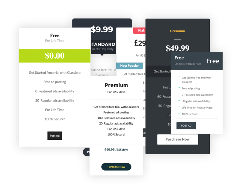 Classiera introduces unique feature Pay Per Post for you to charge your users for Single post against your top categories with different prices.